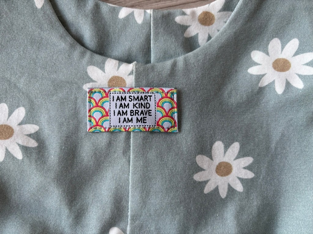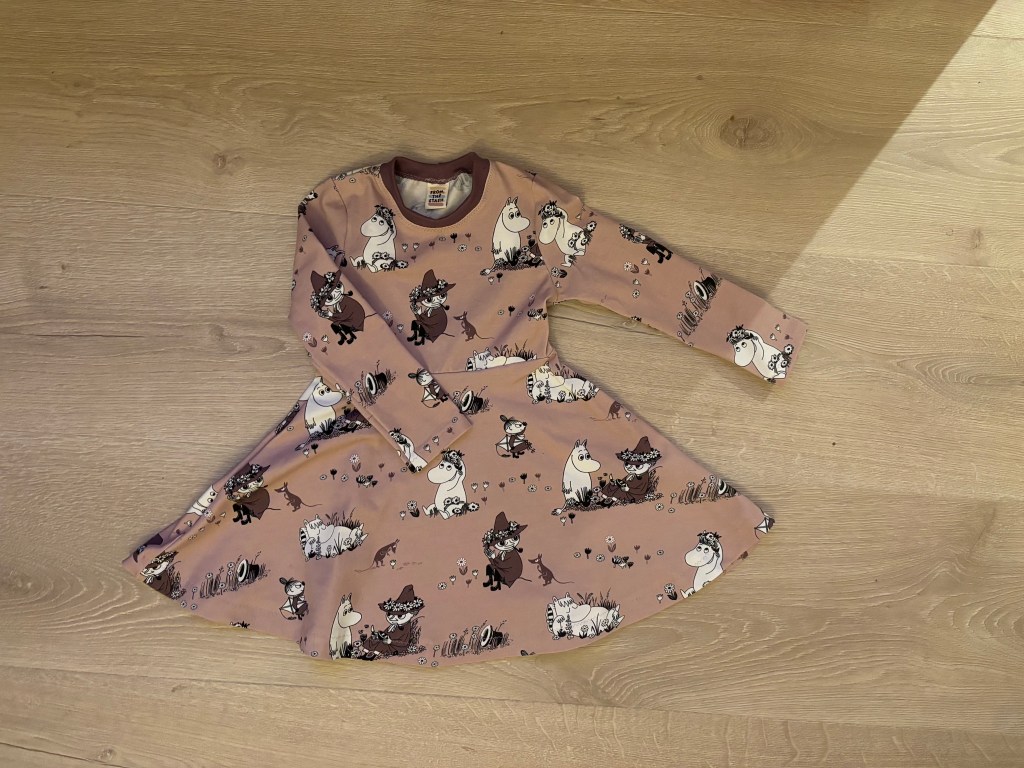 Det yngste barnets kostyme er en kjole sydd i samme isoli fra Selfmade. Mønsteret som er benyttet er Minikrea 50022. Jeg har sydd med dette mønsteret før, og tenkte da at passformen ikke var helt det jeg ønsket (lenke til innlegg her). Jeg valgte likevel å bruke mønsteret på nytt, men gikk da en størrelse ned sammenliknet med det jeg vanligvis ville valgt for dette barnet. Det fungerte greit. Også denne kjolen har fått påført vinyl med merket til Gru i Grusomme meg.