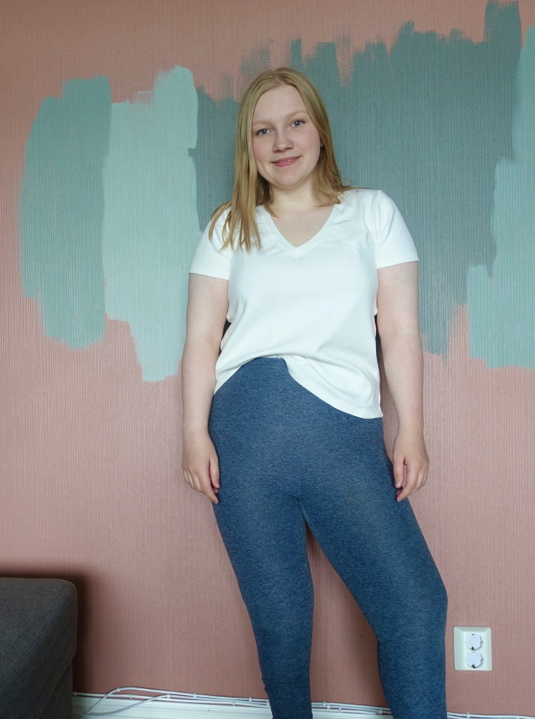 Det nye tilskuddet i sommergarderoben er denne t-skjorten – en Union St. Tee fra Hey June Handmade. I tillegg til de vanlige tilpasningene jeg har gjort fra tidligere på dette mønsteret (se tidligere blogginnlegg), har jeg også gradert midjen ned til størrelse S. Resten av t-skjorten er i størrelse M. Selv om midjen er gjort smalere på denne t-skjorten enn på tidligere modeller oppleves den fremdeles mer romslig. Dette kan kanskje være fordi stoffet er tynnere. Stoffet jeg har brukt er bomullsjersey fra Stoff og Stil i fargen «rouge».